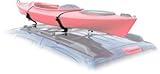 The V-Rack V-Rack Kayak & Canoe Roof Carrier Rack hauls a single kayak or canoe in the horizontal position on a vehicle roof with existing roof rack cross-bars. Includes (4) support bars forming V-shapes, necessary cross-bar mounting hardware, (2) 114" tie-down straps Works with cross-bars from 1-1/2"W x 1-1/8" to 2-3/4" thick (requires at least 1-3/4" from vehicle roof to cross-bars for installation) Made with heavy duty steel with a black powder-coat finish. Kayak and canoe hulls are protected by high density foam jackets. Read more